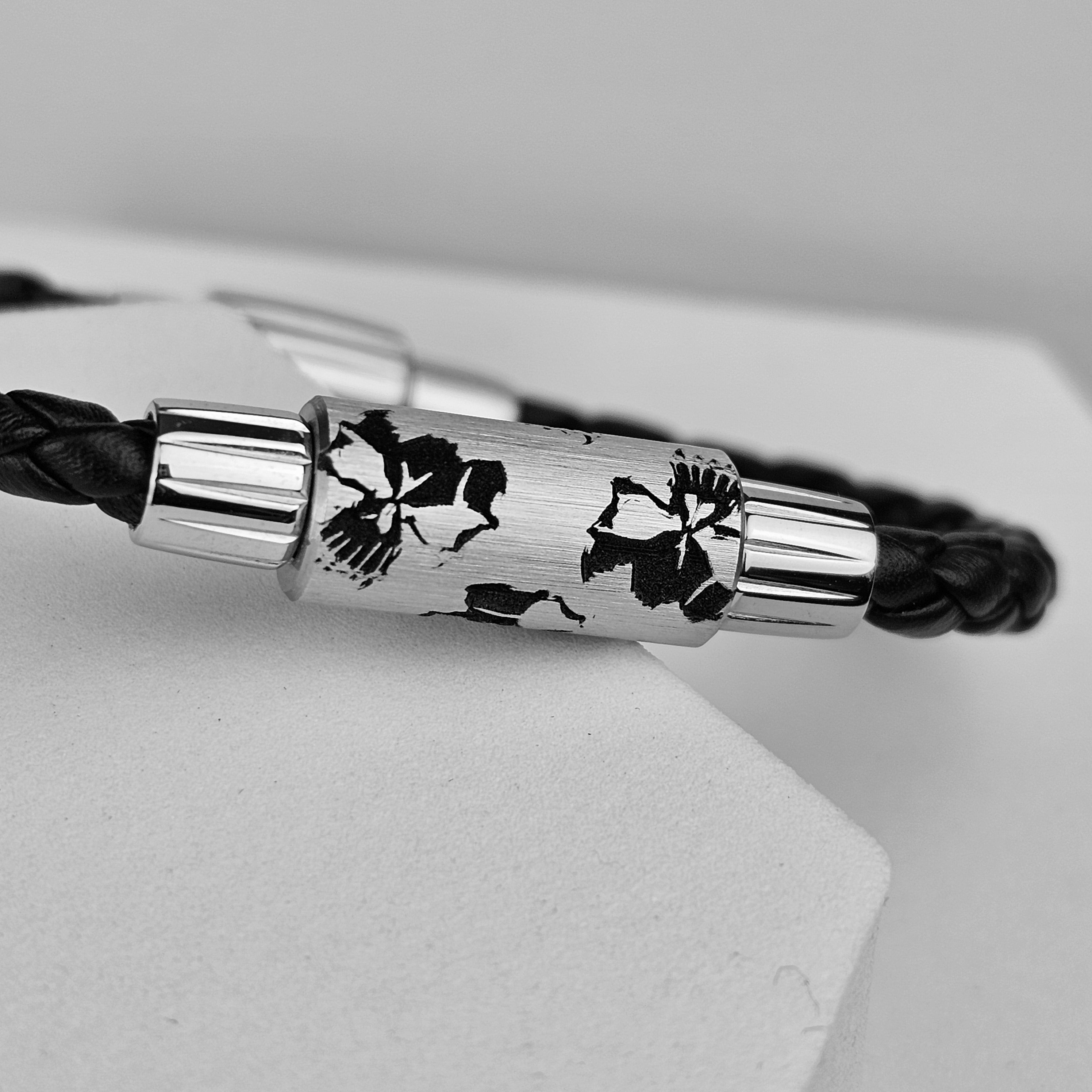 - 1 perle en Acier 316L Gravé Laser et finition froissée