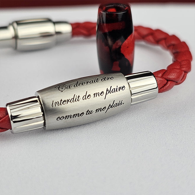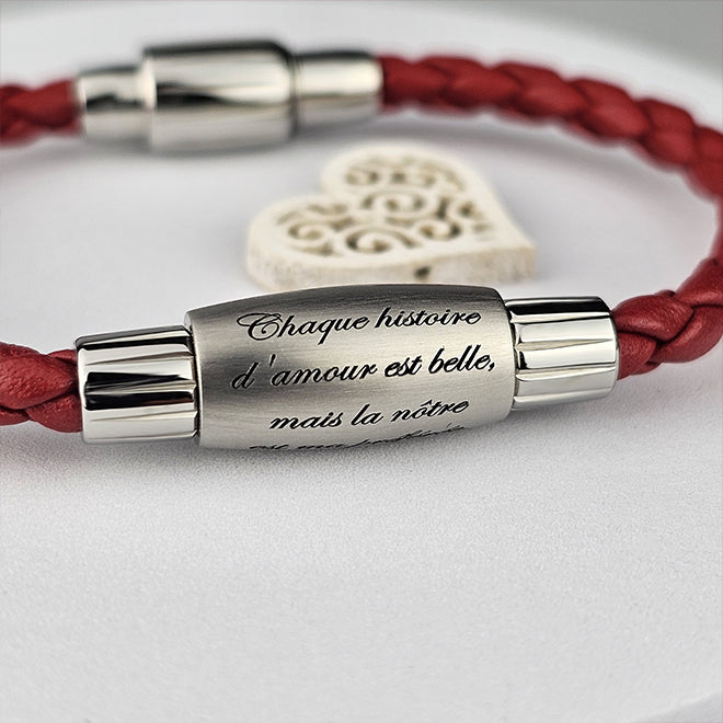 - 1 gebogene und gravierte Perle aus 316L-Stahl (Design: kleine Liebesbotschaften)