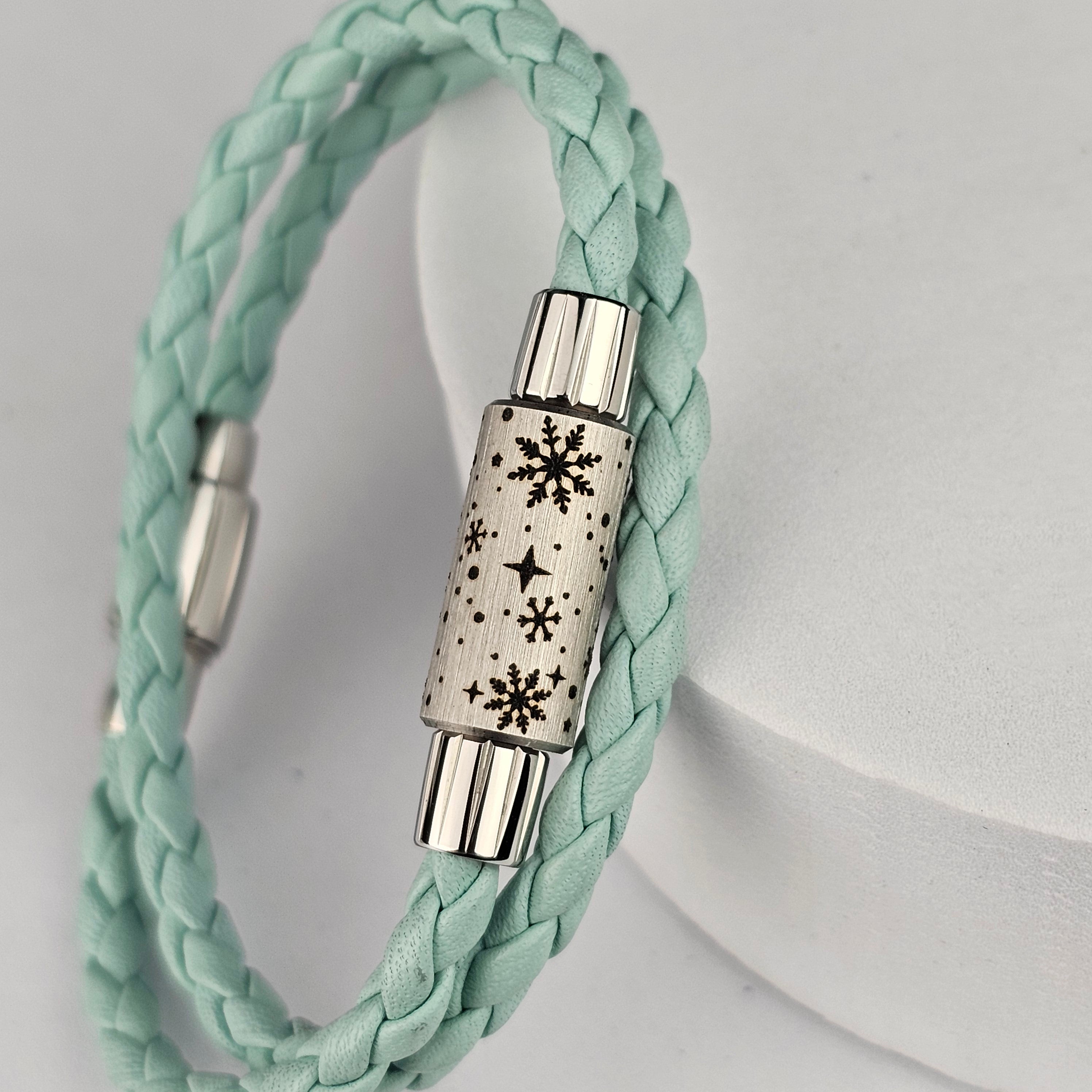 It includes the WINTER SKY bead, where snowflakes swirl under a starry sky 🌌, as well as a leather bracelet in the color of your choice , available in single or double versions.